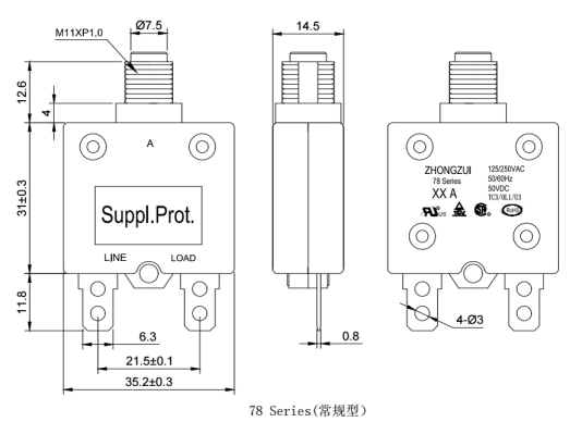 78系列是一種輕巧,單極,按壓后復位的過電流輔助保護器。